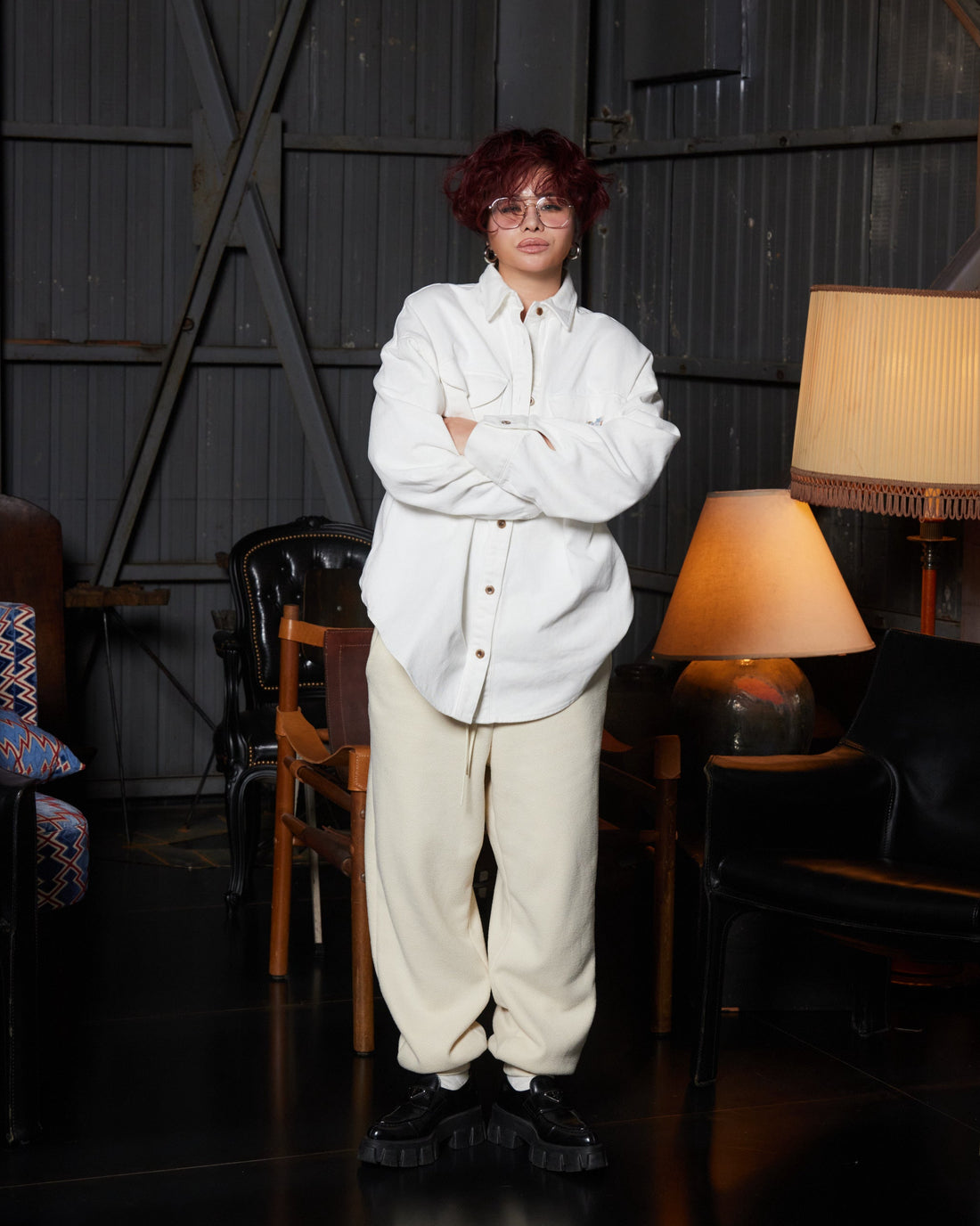 【発送予定日】 即納(2日〜4日営業日以内に発送) ・決済完了後、発送準備が整い次第順次発送となります。 ※ご注文確定が23時59分までのものは、翌営業日より順次発送いたします。 ※土日祝日および当社休業日のご注文は、休業日明けの営業日より順次発送いたします。 ・複数商品をご購入の場合は、予約商品含み全ての商品のご用意が出来次第の発送となります。 -Item- しっかりとしたキャンバス素材を使用したワークシャツ。 厚みのある生地感がシルエットに立体感を生み、ラフに羽織るだけで存在感のあるスタイルに仕上がります。ワークディテールをベースにしながらも、クリーンなカラーとミニマルなデザインで洗練された印象に。 一枚でシャツとしてはもちろん、軽いアウター感覚での着用も可能。デニムやスカートなど、合わせるアイテムによって表情を変える汎用性の高いアイテムです。 カジュアルでありながら、どこか品のある佇まい。日常に取り入れやすい、バランスの取れたワークシャツです。 ※実際はポケットにピスネームが付いております。掲載写真はサンプルのためまだ付いていないものになります。 -material-...