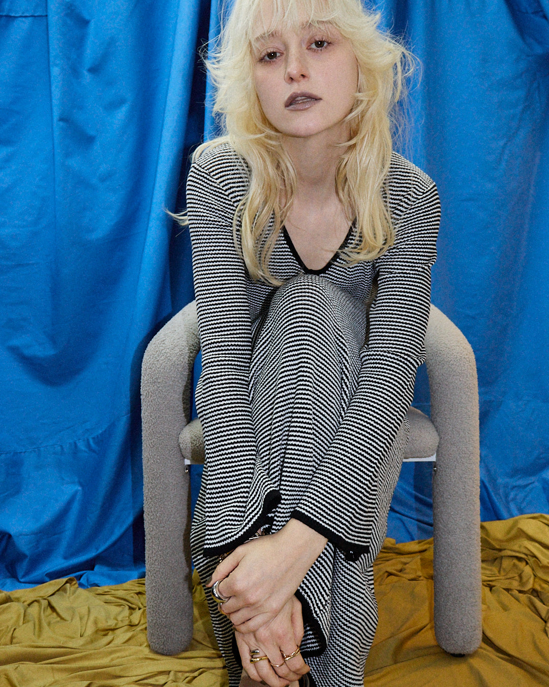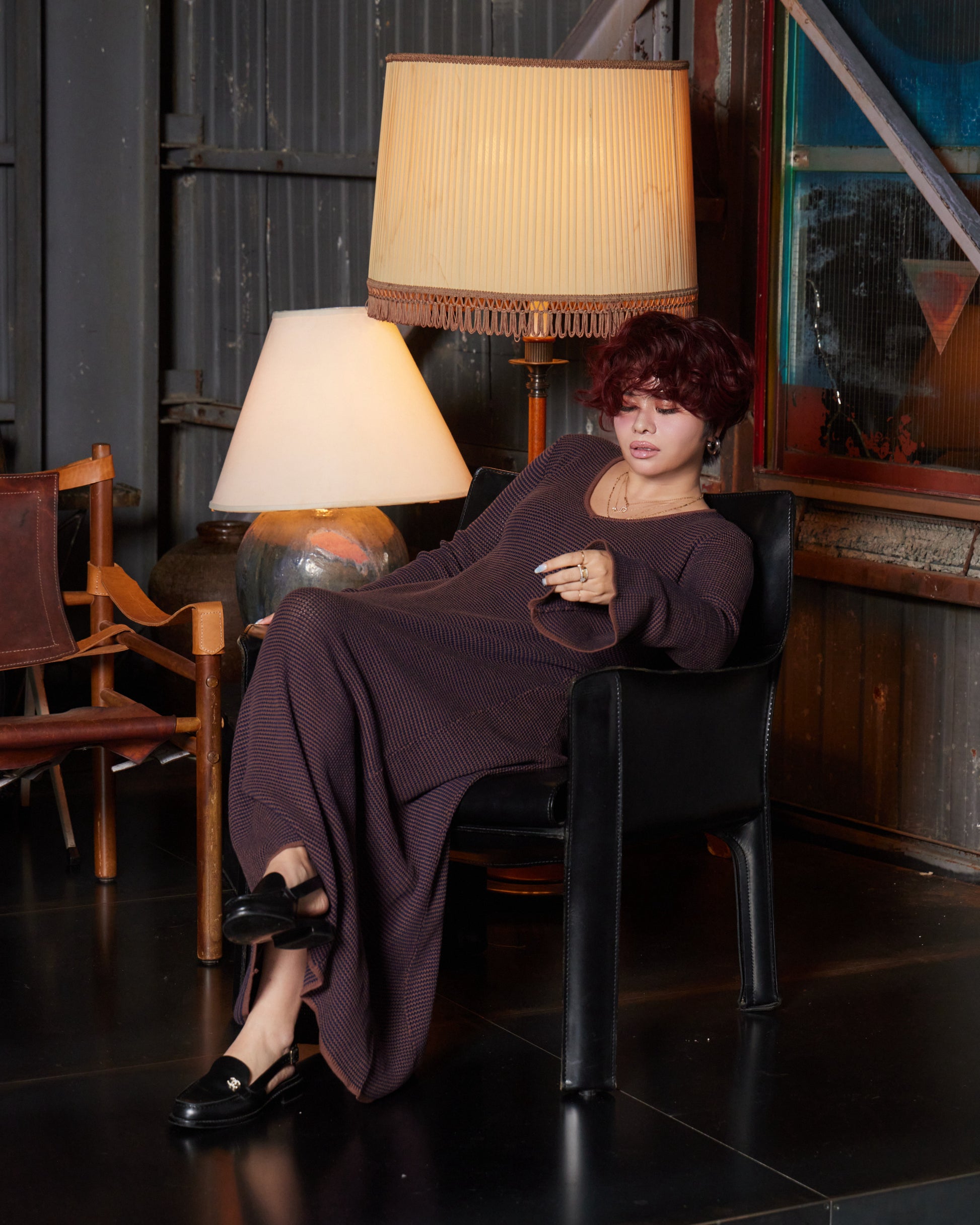 ※編み目の仕様によりご着用時に生地の重さで丈が下に伸び、実際の着用感は長く感じられる場合がございます。